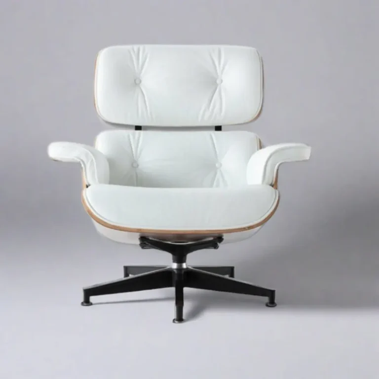£736.00 – £784.00Price range: £736.00 through £784.00Classic Eames Lounge Chair & Ottoman – White Leather, Ash Wood & Chrome Base