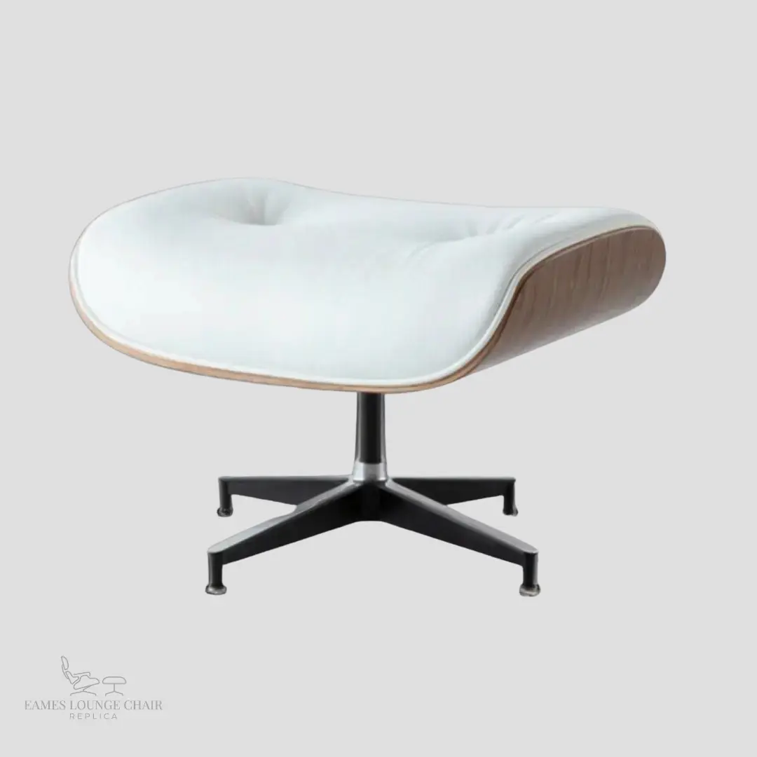 Experience timeless style and unparalleled comfort with this Eames armchair replica in luxurious white leather. Designed for those who value classic midcentury aesthetics, this chair and ottoman set pairs a pristine white leather finish with a finely crafted walnut wood frame, creating a sophisticated yet cozy seating solution. Perfect for living rooms, offices, studies, or reception areas, it brings both elegance and comfort to any space.