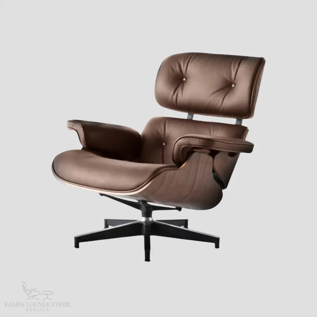 Premium Eames Style Lounge Chair Reproduction – Brown Leather Walnut Wood