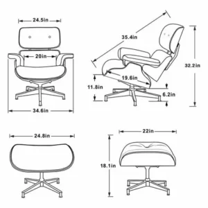 We use premium, high-end materials to ensure longevity and comfort. This includes 100% Full-Grain Aniline Leather for the upholstery and an 8-layer laminated wood veneer (available in Walnut or Rosewood) for the shells. The base is constructed from reinforced die-cast aluminum with a 360-degree swivel function, mirroring the architectural integrity of the original design.